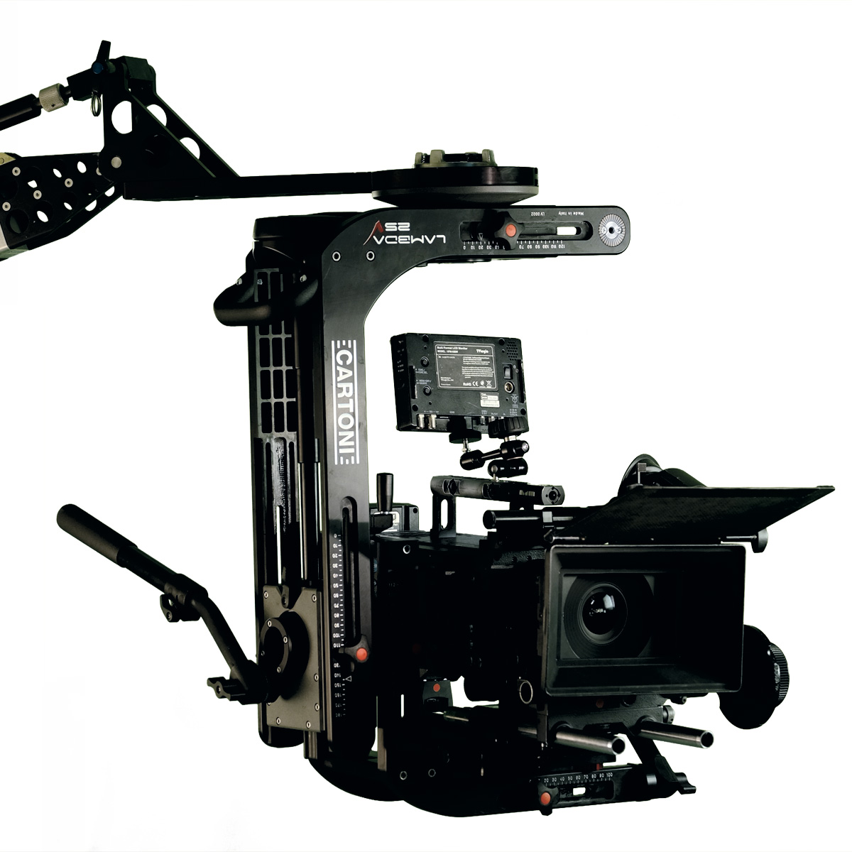 El cabezal LAMBDA 25 se puede montar en cualquier soporte clásico, como trípodes o carros, o se puede utilizar en posición suspendida en grúas, brazos de pluma y carros.