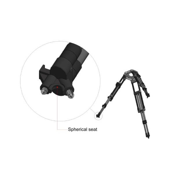 Para reducir el peso total del trípode sin renunciar a la capacidad de carga prevista de 150 kg, todos los botones de bloqueo y las piezas fundidas de las patas están fabricados con una mezcla de alta resistencia de polímeros y fibra de vidrio, lo que ofrece una excelente combinación de capacidad de carga y comodidad durante el trabajo.