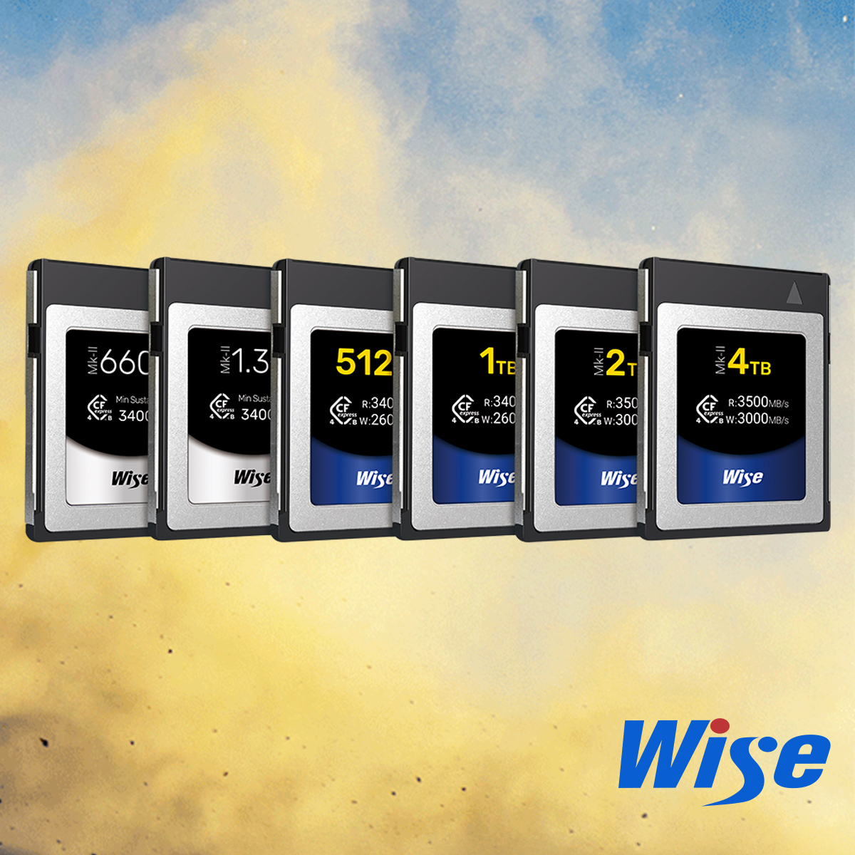 Blackmagic Design ha incluido las nueve tarjetas CFexpress 4.0 de tipo B del fabricante Wise en la lista de soportes de almacenamiento recomendados para su cámara de cine Cinema Camera 6K. Estos soportes han sido certificados y recomendados como almacenamiento fiable por su calidad y compatibilidad con la cámara.