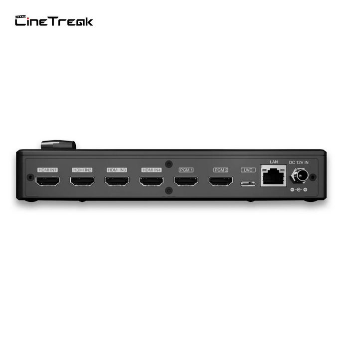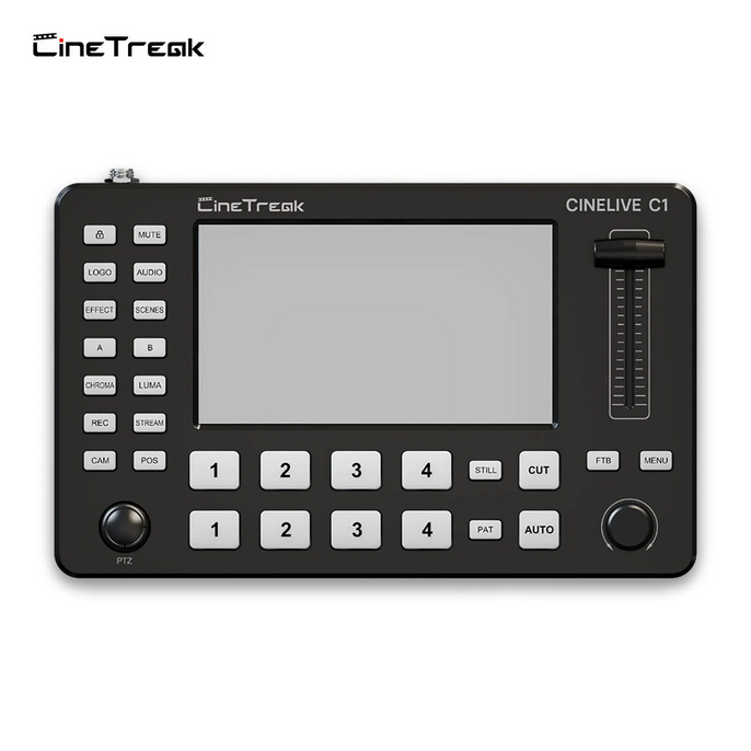 El CineTreak Cinelive C1 es un conmutador de vídeo HDMI compacto de 5,5 pulgadas diseñado para la transmisión profesional, que cuenta con 4 entradas HDMI, croma avanzado, biblioteca multimedia integrada, control PTZ y transmisión en directo RTMP para múltiples plataformas.
