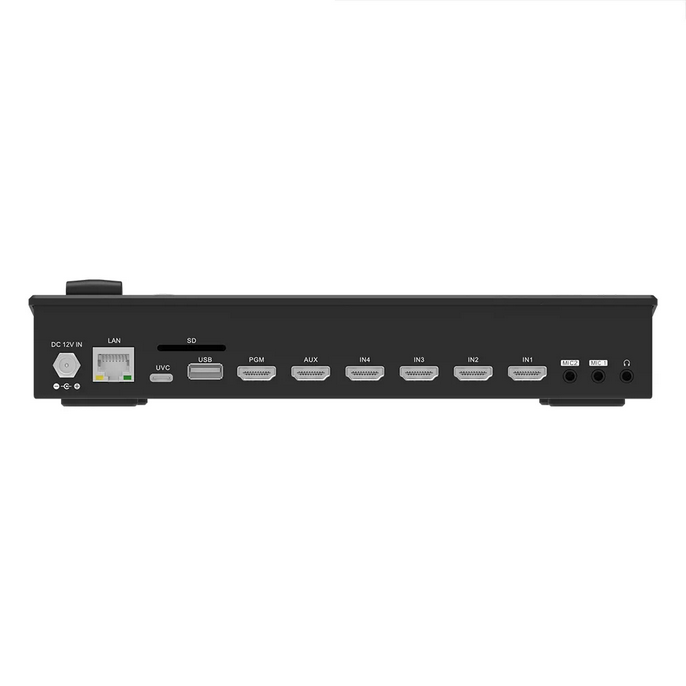 Herramientas profesionales como el keying de croma y luma, los efectos PIP/POP y la transmisión dual RTMP aumentan la flexibilidad creativa. El conmutador también permite la grabación local en formato H.264 con reproducción instantánea y está equipado con una función PTZ para controlar hasta cuatro cámaras a través del protocolo VISCA.