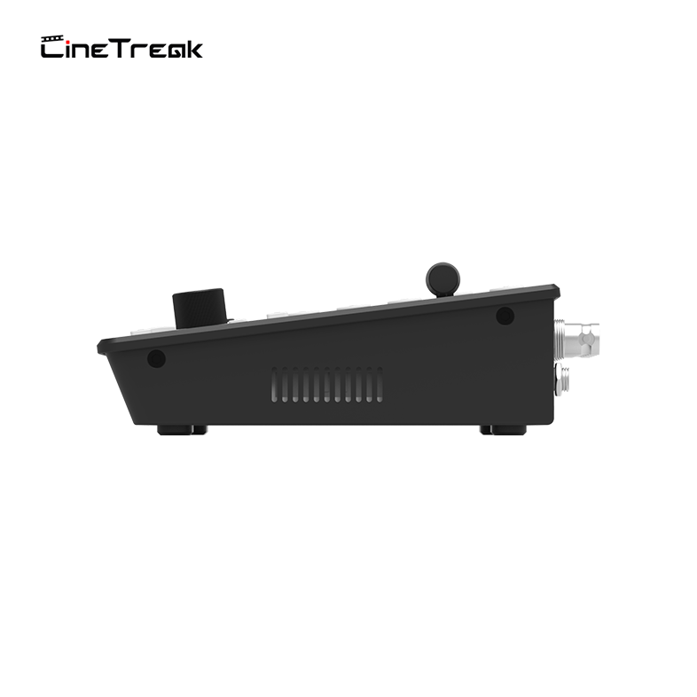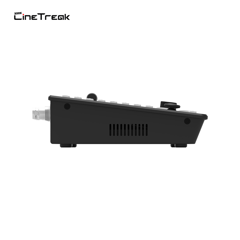 El CineTreak Cinelive C2S es un potente y compacto mezclador de vídeo diseñado para la retransmisión profesional en directo y entornos de producción híbridos. Se presenta en un resistente panel de aluminio, cuenta con una pantalla táctil de alta precisión de 5,5 pulgadas y un diseño simplificado que ofrece un rendimiento robusto sin sacrificar la portabilidad.