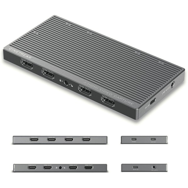 El CineTreak CT-4 es un dispositivo profesional de grabación HDMI de 4 canales que ofrece un rendimiento real de 4K a 60 fps con conmutación en directo en un diseño compacto y portátil. Gracias a sus cuatro entradas HDMI con salida en bucle, compatibilidad con UVC plug-and-play, transferencia USB-C de 10 Gb/s y entrada de audio profesional, es ideal para retransmisiones en directo con múltiples cámaras, formación, conferencias y flujos de trabajo de producción móvil.