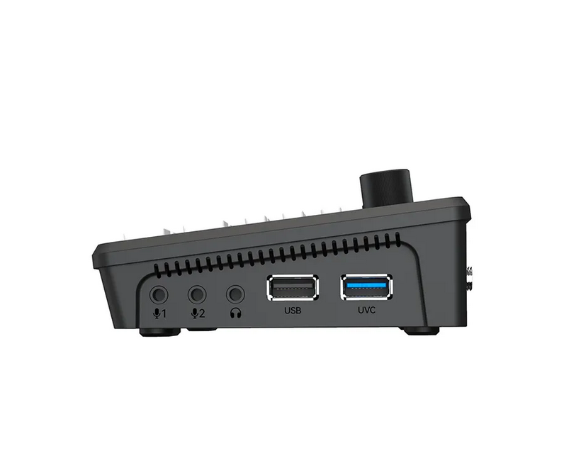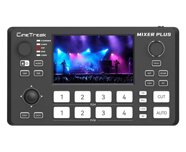 Mixer Plus es un potente y compacto conmutador de vídeo diseñado para retransmisiones en directo, producción de eventos y retransmisiones con múltiples cámaras. Está disponible en dos versiones que se adaptan a diferentes necesidades de flujo de trabajo: Mixer Plus con cuatro entradas HDMI y Mixer Plus SDI, que ofrece cuatro entradas SDI para garantizar la compatibilidad con señales de calidad de emisión. Ambos modelos admiten conmutación fluida entre múltiples canales, salida AUX personalizable y monitorización Multi View en tiempo real. Gracias a hasta 30 efectos de transición integrados, incluidos Mix y DIP, los usuarios pueden crear transiciones de escena profesionales con duración ajustable. La flexibilidad de audio está garantizada por dos entradas de micrófono y un conector para monitorización de auriculares, que permiten controlar el audio en tiempo real. El conmutador también admite el control de cámaras PTZ a través de VISCA sobre IP, lo que permite conectar hasta cuatro cámaras con múltiples preselecciones a un solo dispositivo. Otras herramientas de producción incluyen chroma key, luma key, imagen en imagen (PIP), keying de salida (DSK) y superposición de logotipos. Mixer Plus y Mixer Plus SDI están equipados con una interfaz USB 3.0 UVC para streaming HD sin comprimir y un puerto USB 2.0 para importar archivos multimedia, como logotipos y fondos, y ofrecen una solución de conmutación completa y versátil adaptada a los creadores de contenido profesionales y a los equipos de producción en directo.
