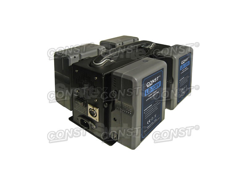 Este cargador de sobremesa de dos canales para dos baterías V-mount permite cargar