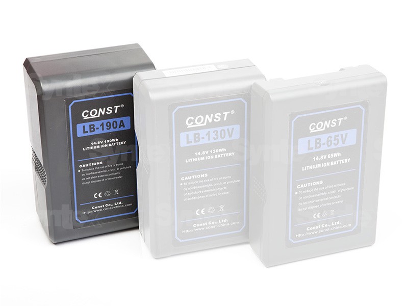 La batería LB-190A, la de mayor capacidad de la gama de baterías profesionales CONST, con montura Gold-Mount / Anton Bauer.