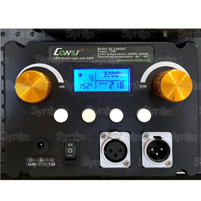 SL-L80DT 72 W, bicolor, luz LED con intensidad y temperatura de color regulables mediante el controlador y el mando a distancia incluido, con posibilidad de montar una batería V-Mount y DMX