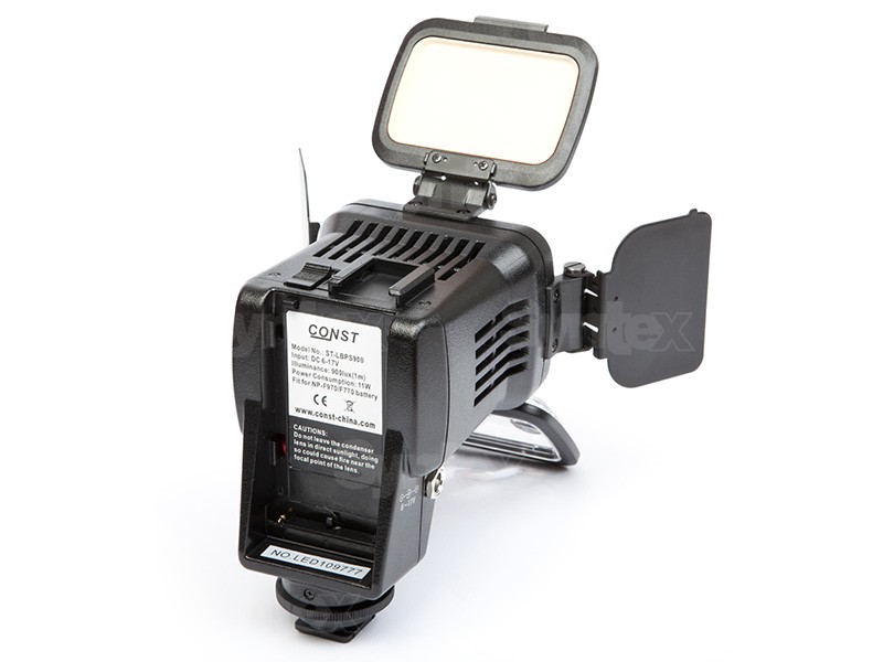 La CONST ST-LBPS900 es una luz LED compacta para cámaras con potencia luminosa regulable (2 niveles: 400 lux/1 m y 900 lux/1 m). La temperatura de color de la luz se puede ajustar mediante un filtro de color. La luz funciona con baterías SONY NP-Fxxx.