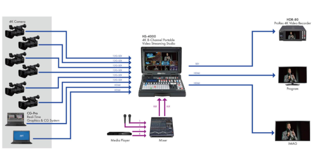 La mesa de regiduría de ocho canales 4Kp60/50 SE-4000 ofrece interfaces 12G-SDI y