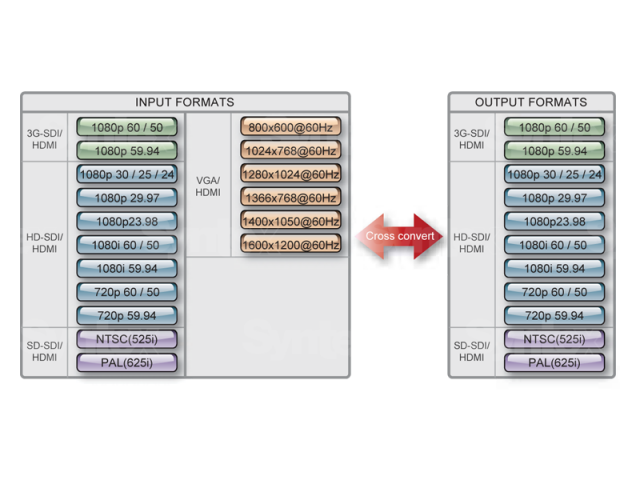1080p60/50, 1080p59,94, 1080p23,98/29,97/24/25/30, 1080i60/50, 1080i59,94, 720p60/50, 720P59,94, 525i, 625i