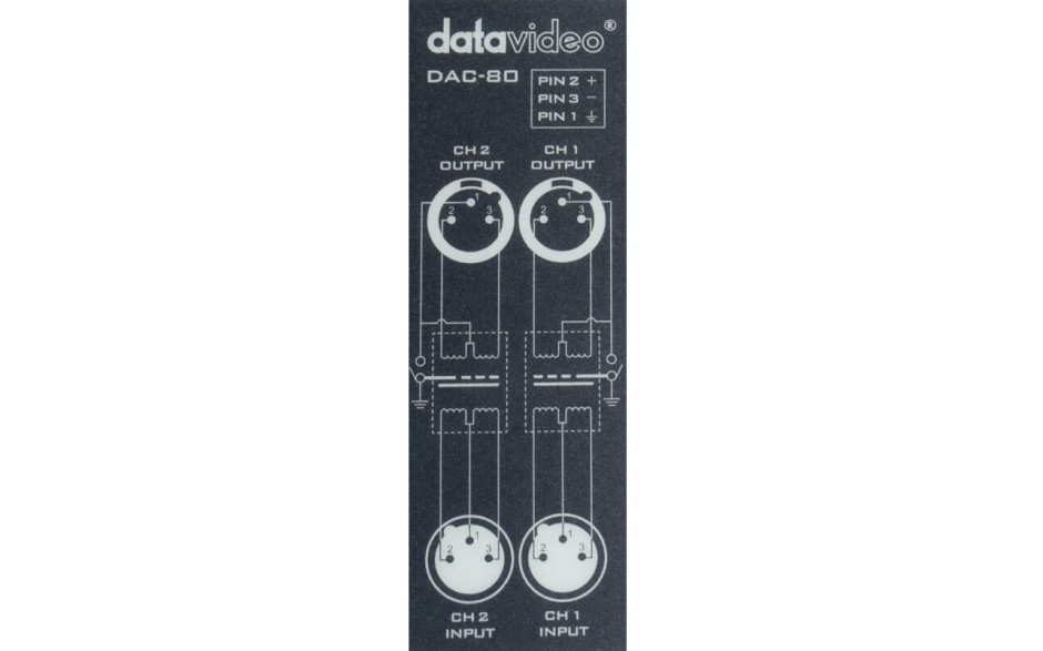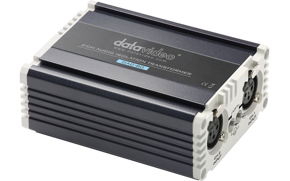 El dispositivo Datavideo DAC-80 elimina el zumbido de las líneas de audio causado por bucles de tierra: basta con conectarlo mediante cables de entrada y salida con conectores XLR. El DAC-80 provoca una atenuación y una distorsión mínimas de la señal; además, es totalmente pasivo y no requiere alimentación eléctrica para funcionar. El DAC-80 es compatible con el rack opcional RMK-2 y con el soporte opcional MB-5 con velcro.