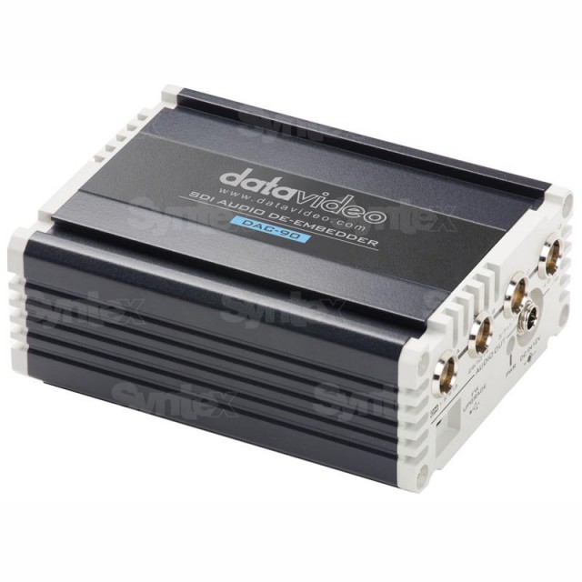 El DAC-90 también cuenta con ajustes de conmutación SMPTE y EBU, y la señal de audio desincrustada se puede asignar mediante los interruptores DIP integrados.