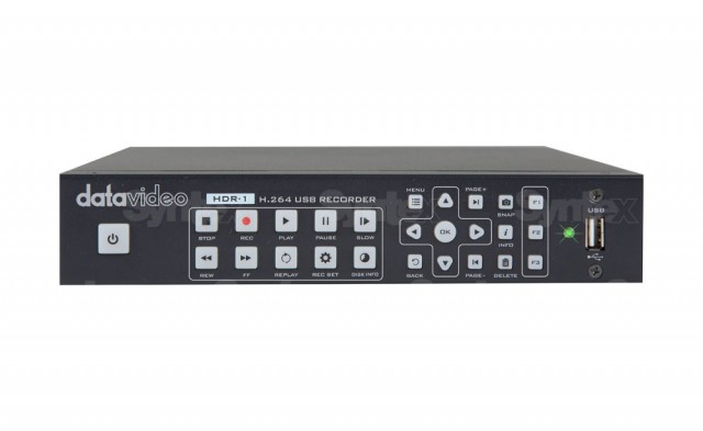 El HDR-1 es un grabador/reproductor de vídeo USB H.264 independiente y portátil con fuente de alimentación redundante (SAI). Graba vídeo HD de alta calidad (con una tasa de bits de hasta 20 Mb/s en formato MP4) y es el compañero ideal para grabar conferencias, charlas, conciertos, etc., o para reproducir anuncios en salas de actos, etc. También ofrece la posibilidad de crear vídeos proxy optimizados para la web durante la gestión de retransmisiones en directo mediante salas de control. Los archivos grabados se pueden subir posteriormente a YouTube sin necesidad de transcodificarlos, lo que facilita compartir los vídeos en línea. Gracias a los botones del panel frontal, el grabador/reproductor es muy fácil de usar.
