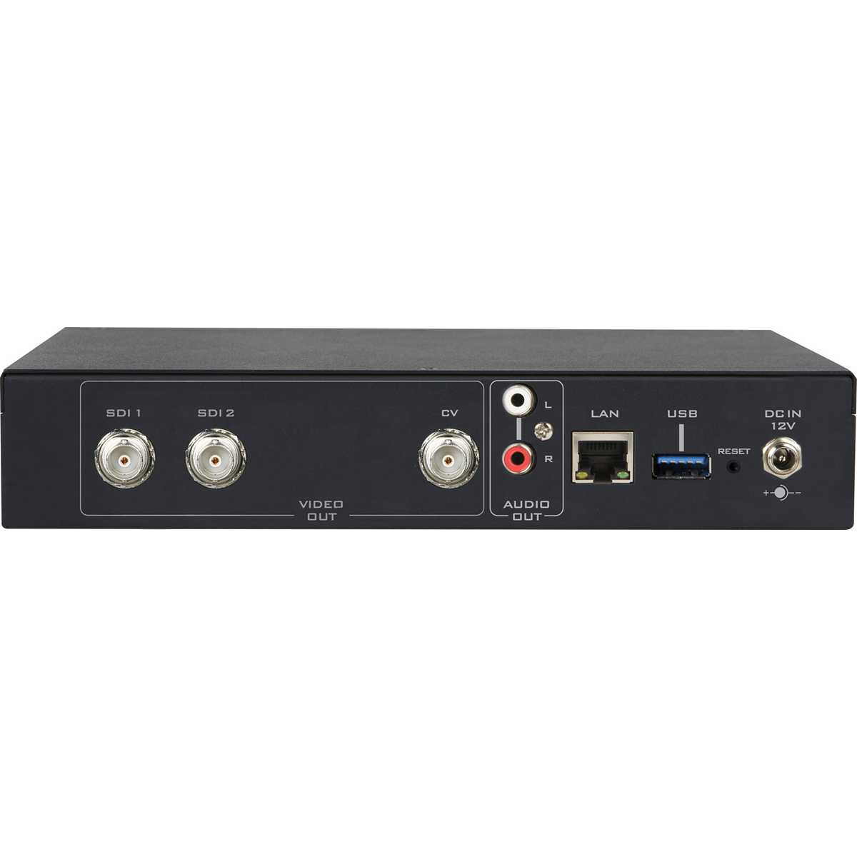 Decodificador de vídeo IP 4K a 12G-SDI. Decodifica vídeo procedente de codificadores Datavideo, YouTube Live, uStream y otros. La salida es vídeo de alta calidad con una resolución de 2160p50/60. El paquete incluye el mando a distancia RMC-12.