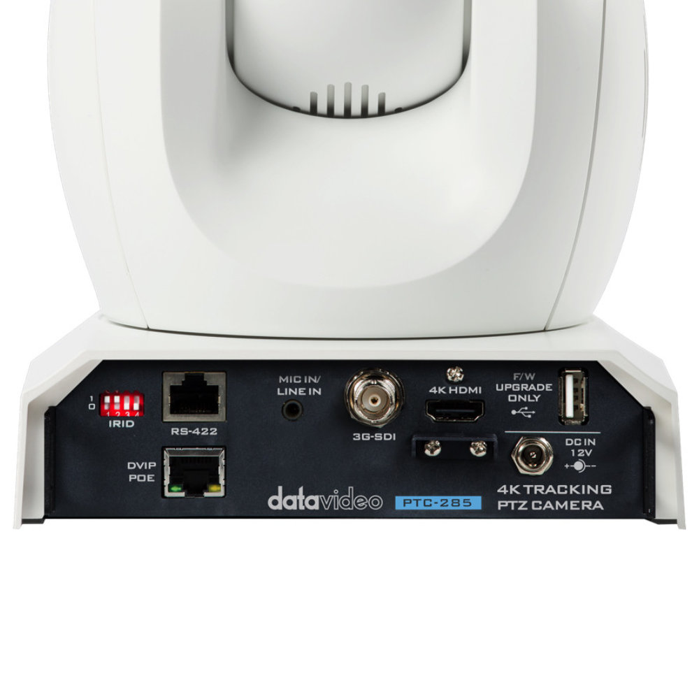 Datavideo presenta la cámara 4K 50/60p con seguimiento automático PTZ, la PTC-285, que se puede controlar fácilmente a través de un puerto serie RS-422 tradicional o mediante control remoto IP a través de DVIP (protocolo propietario de Datavideo) o Sony VISCA sobre IP. Esta nueva gama de cámaras 4K admite salida de transmisión dual para aplicaciones del mercado audiovisual. Se puede transmitir fácilmente a Facebook (RTMPS), YouTube y dvCloud.