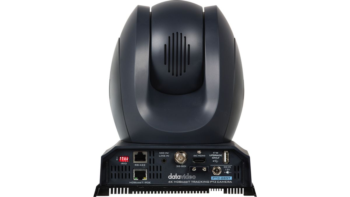 La cámara PTZ 4Kp50/60 Datavideo PTC-285T ofrece una serie de funciones innovadoras, entre las que se incluyen el seguimiento automático, la salida de transmisión dual y una amplia compatibilidad con estándares de control remoto, como IP/DVIP/VISCA. Versión HDBaseT.