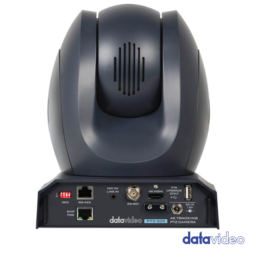 Datavideo presenta la cámara PTZ 4K 50/60p con seguimiento automático. La PTC-305 se puede controlar fácilmente a través del puerto serie tradicional RS-422 o de forma remota mediante el protocolo IP DVIP (protocolo propio de Datavideo) o Sony VISCA over IP. Esta nueva gama de cámaras 4K admite salida de transmisión dual para aplicaciones del mercado audiovisual. Se puede transmitir fácilmente a Facebook (RTMPS), YouTube y dvCloud.