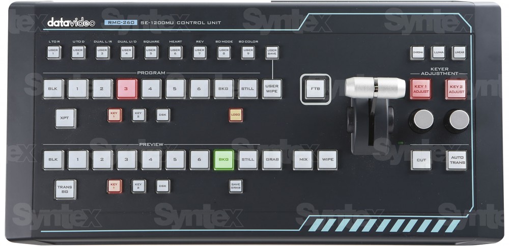 El Datavieo RMC-260 es un panel de control físico para la unidad de control SE-1200MU. Se conecta a través de una interfaz RS-232.