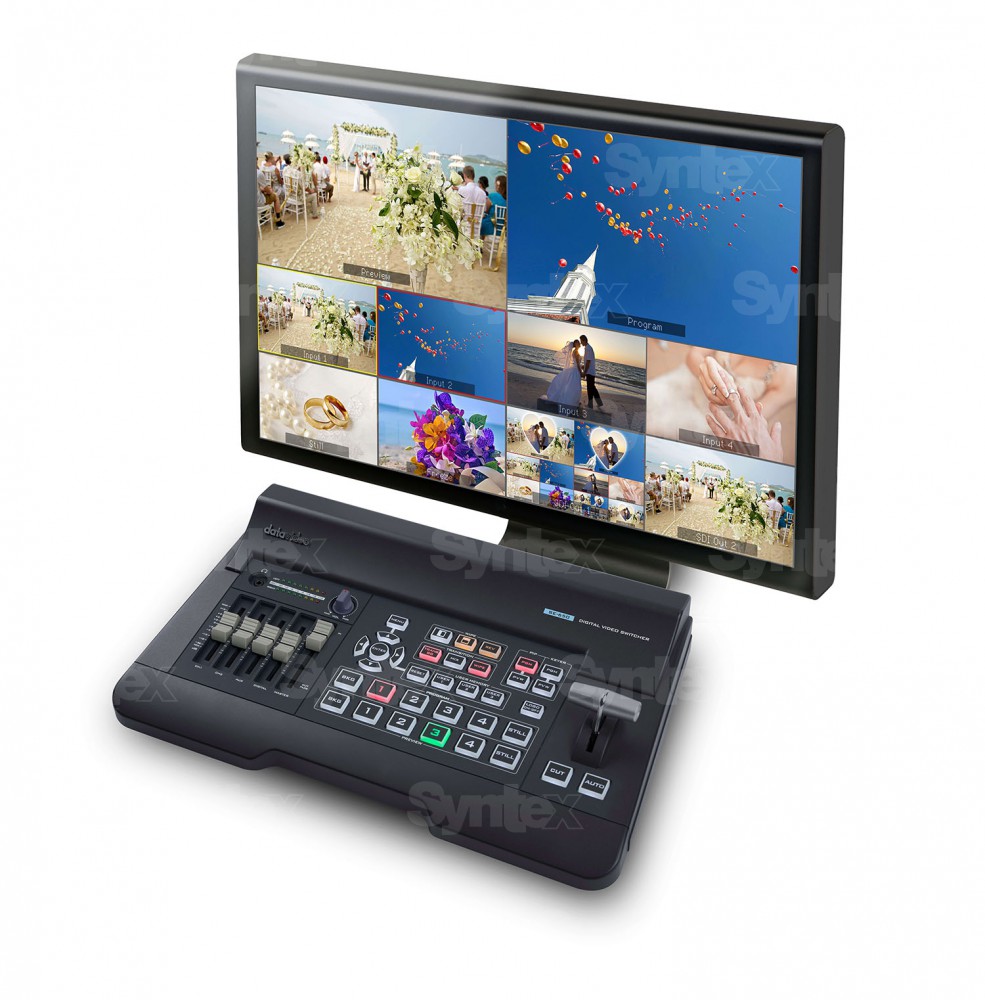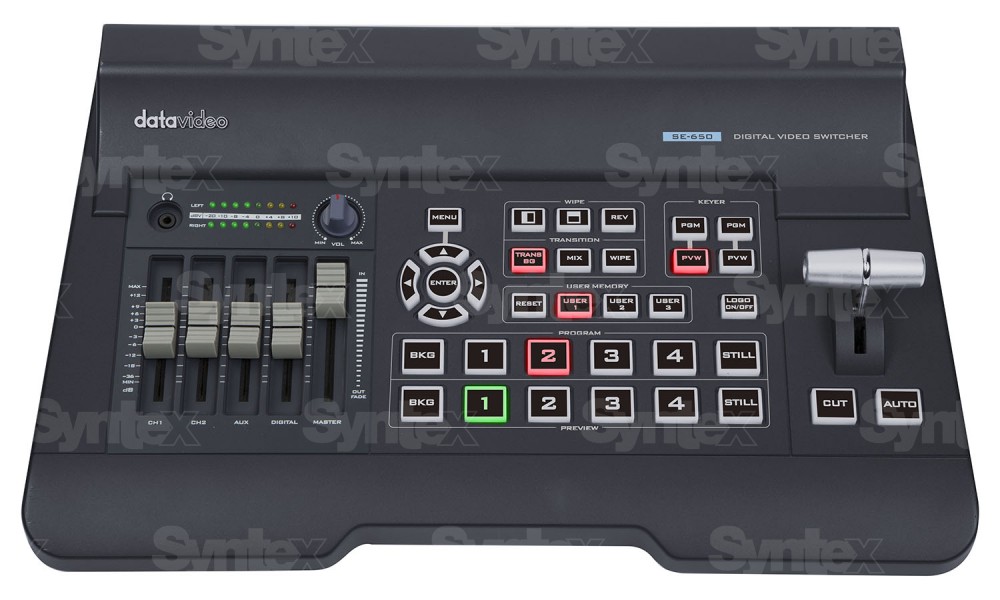 La Datavideo SE-650 es una unidad de control HD profesional y miniaturizada con una excelente relación calidad-precio, que cuenta con dos entradas HD-SDI y otras dos HDMI, dos salidas HDMI y una salida HD-SDI. El monitor que se muestra no está incluido en el suministro.