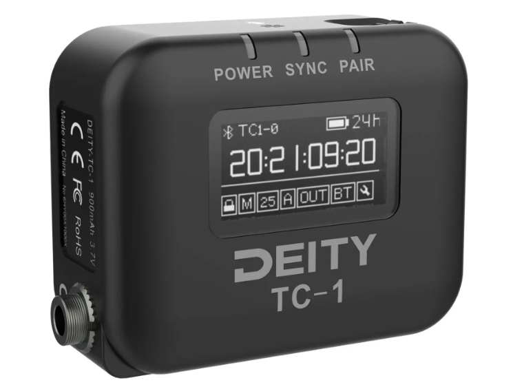 Cada TC-1 está equipado con una pantalla OLED brillante para una rápida confirmación visual del estado de sincronización y los ajustes. El puerto de código de tiempo de 3,5 mm con cierre de seguridad proporciona una conexión física segura, mientras que el micrófono omnidireccional integrado permite grabar rápidamente notas de audio cuando sea necesario. Con una autonomía de hasta 28 horas con una sola carga, el TC-1 es ideal para grabaciones de todo el día sin interrupciones.