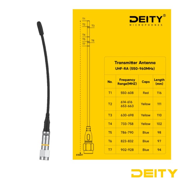 El micrófono UHF-RA se puede recortar a la longitud necesaria para adaptarse a diferentes frecuencias. Cada antena incluye una tabla para que sepas a qué longitud debes recortarla para la banda de frecuencia correspondiente.