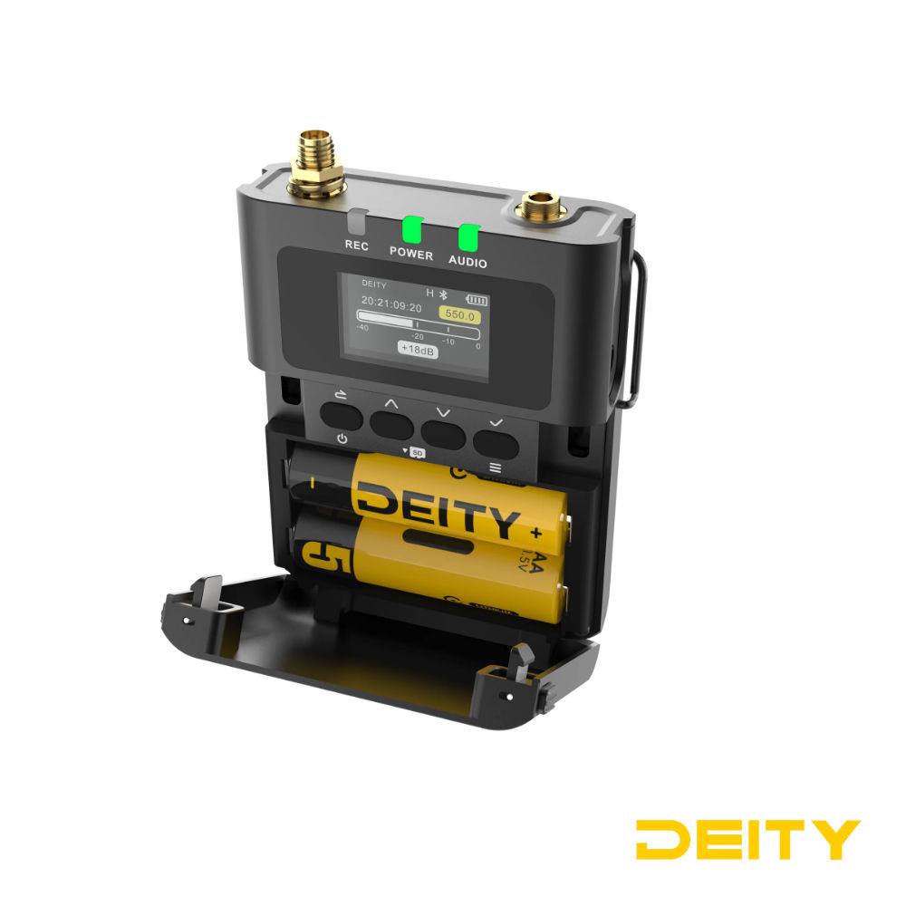 Los transmisores del sistema Deity Theos cuentan con grabadores de audio de 32 bits con coma flotante integrados, que ofrecen flexibilidad para grabar en formato de 24 o 32 bits. Sin embargo, cabe señalar que la versión estadounidense del sistema no puede grabar y transmitir simultáneamente.