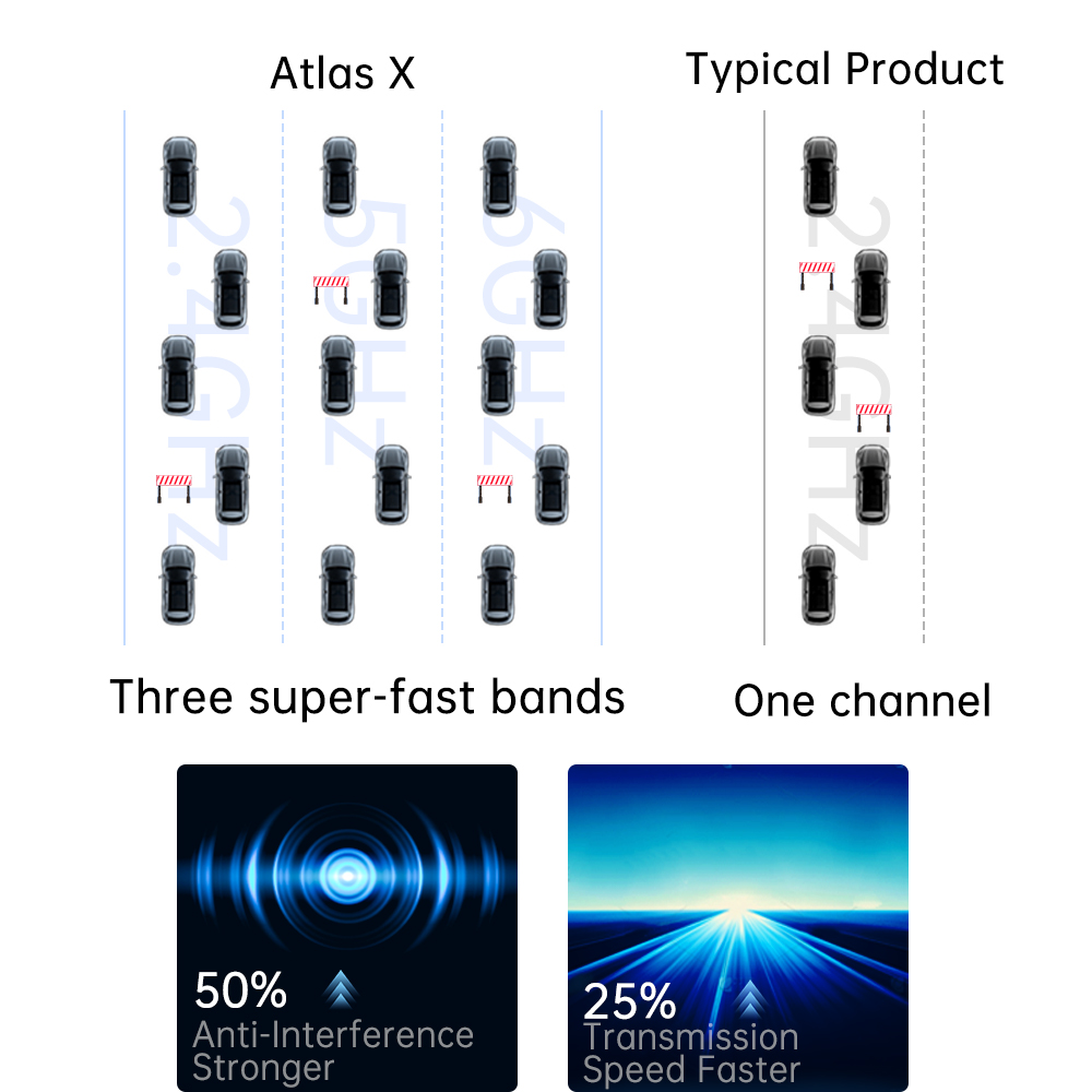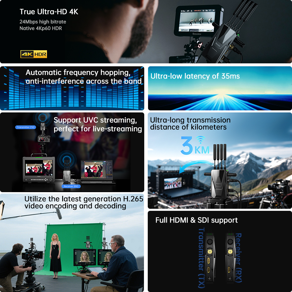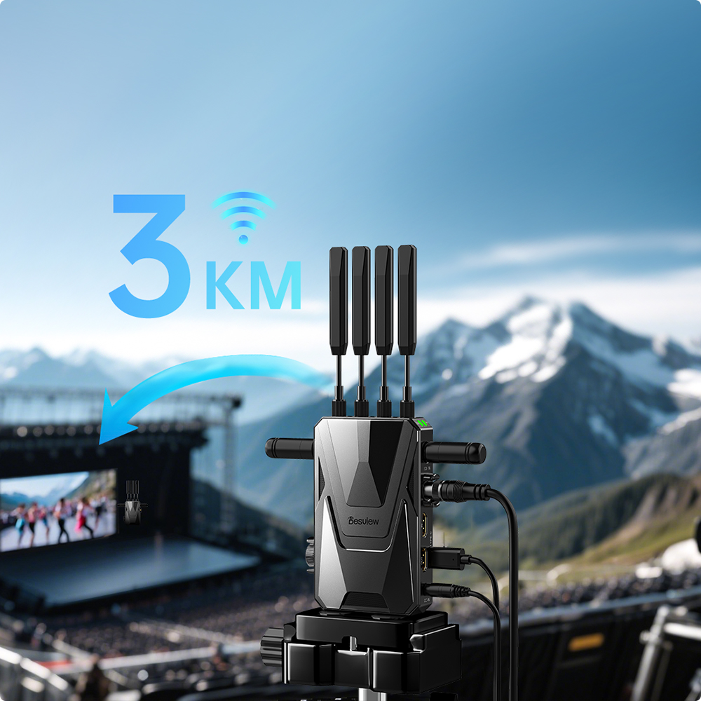 Cobertura estable a larga distancia, alcance de hasta varios kilómetros Gracias a la transmisión de tres bandas, el Atlas X alcanza una distancia de transmisión de hasta 3 km en un entorno abierto sin obstáculos. Es capaz de gestionar rodajes móviles a gran escala con alta permeabilidad de paredes y cumple con los requisitos de monitorización en el plató en cualquier entorno complejo.