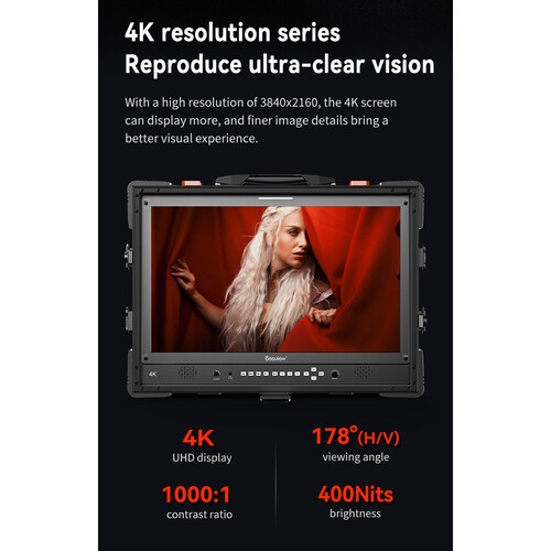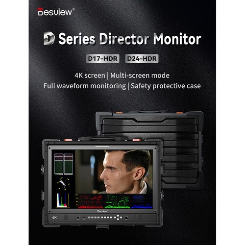 El Desview D17-HDR es un monitor de emisiónprofesional de 17,3 pulgadas con resolución 4K HDR, entradas y salidas HDMI y 3G-SDI, modos de visualización de múltiples imágenes, herramientas de análisis de señal y una carcasa protectora resistente, diseñado para la producción sobre el terreno, la emisión y la monitorización en salas de cine.