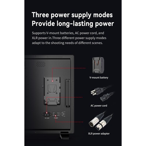 | Alimentación del monitor | Batería V-mount / Alimentación de CA / Entrada de alimentación XLR |