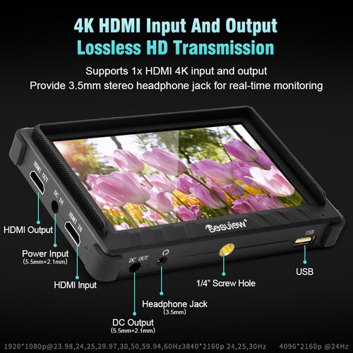 El Desview P5II es un monitor compacto para cámara de 5,5 pulgadas con resolución Full HD de 1920 × 1080, un brillo de 800 cd/m², compatibilidad con HDR y herramientas de monitorización avanzadas, entre las que se incluyen colores falsos, enfoque y forma de onda. Admite entrada HDMI hasta DCI 4K24, cuenta con 3D LUT propio y ofrece opciones de alimentación flexibles mediante la batería de la serie L o una entrada de CC.