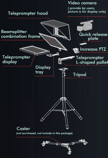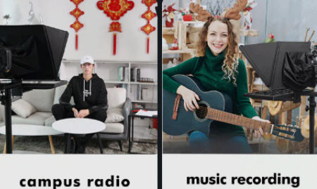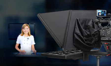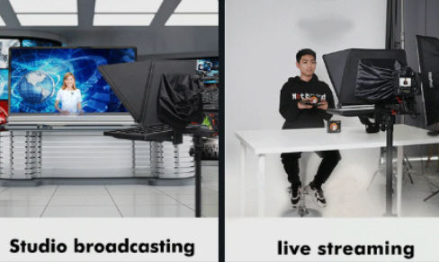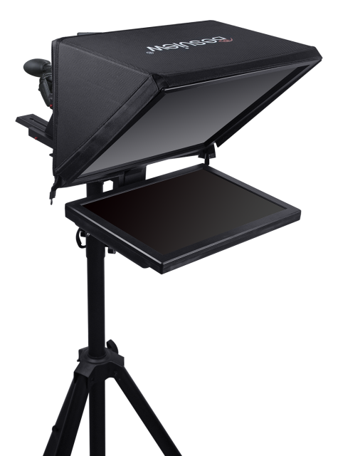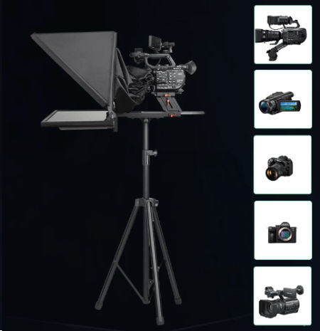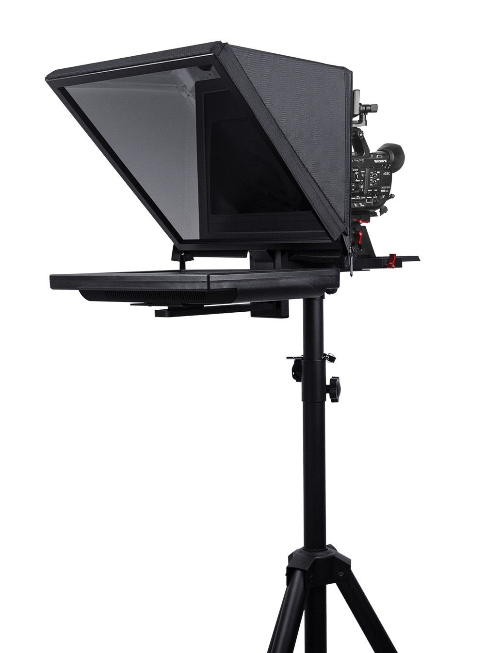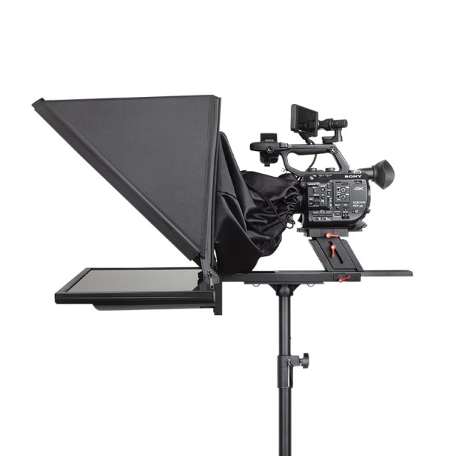 T17 teleprompter, un teleprompter profesional para retransmisiones con un espejo óptico de 17 pulgadas de gran nitidez para la grabación de programas.