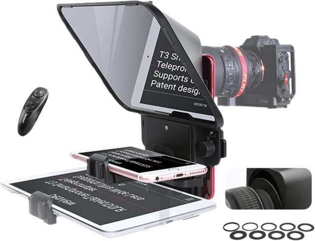 El teleprompter Desview T3 es una solución versátil y fácil de usar diseñada para mejorar la calidad de la producción de vídeo en una amplia gama de aplicaciones, entre las que se incluyen los vlogs, las retransmisiones en directo, la formación en línea, las presentaciones corporativas y la creación de contenidos. El T3 está diseñado para funcionar a la perfección con smartphones y tabletas de hasta 11 pulgadas de diagonal, lo que garantiza una amplia compatibilidad y una configuración sencilla.
