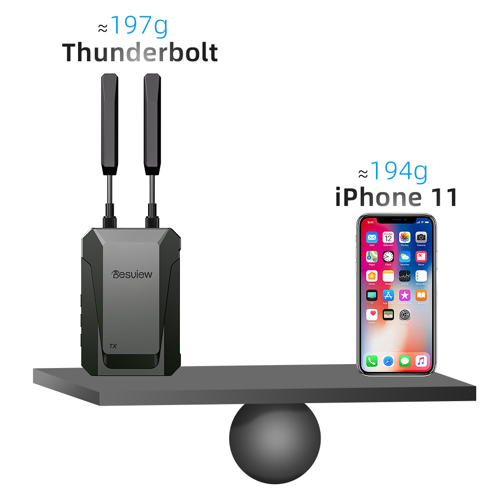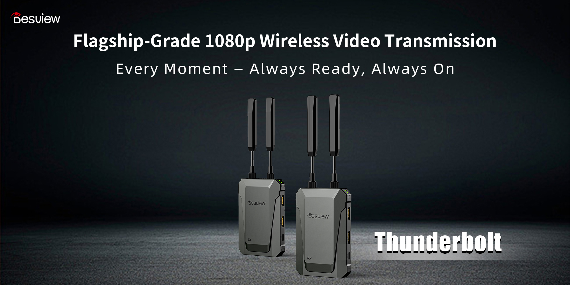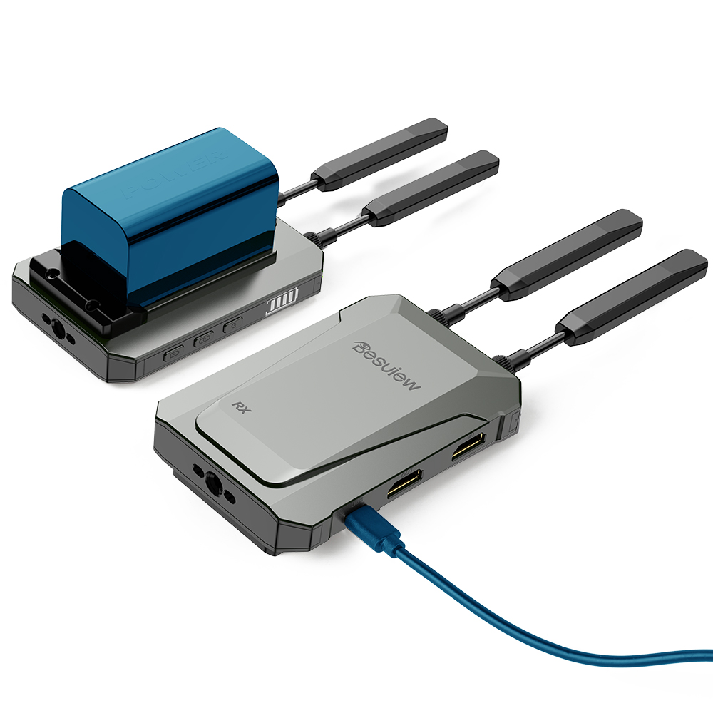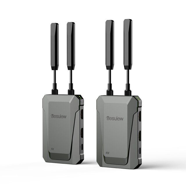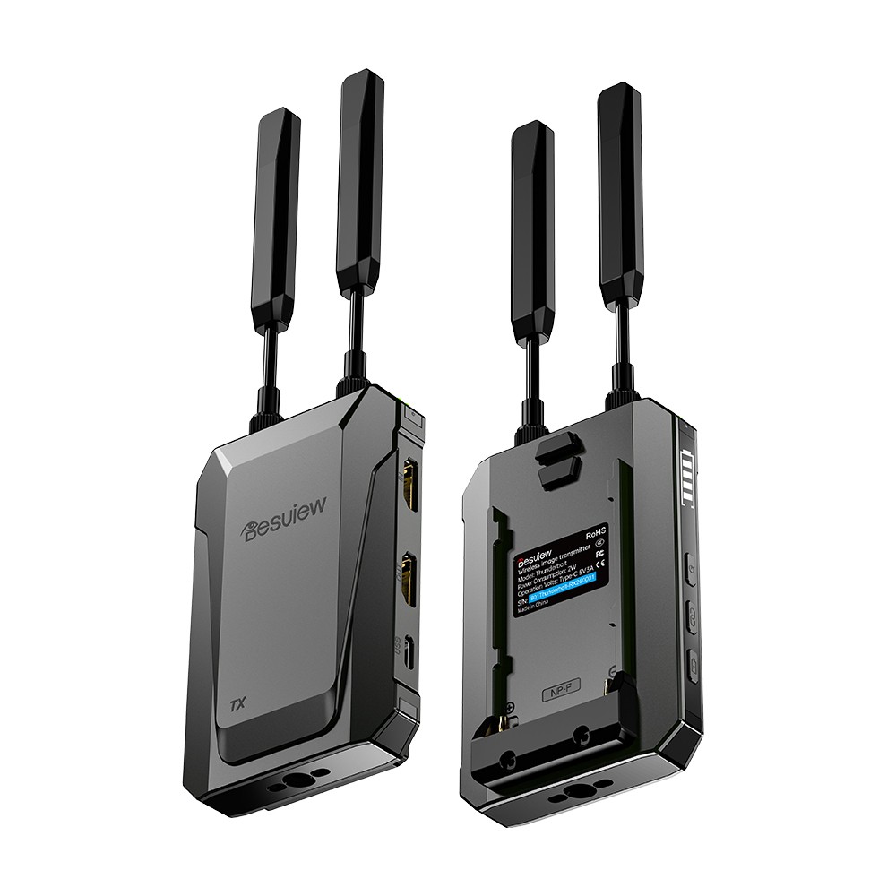 Transmisor y receptor de vídeo inalámbrico Desview Thunderbolt TXRX para la producción de vídeo profesional. Consigue una transmisión inalámbrica fluida de señal HD para tus cámaras y monitores con una latencia extremadamente baja. Diseño robusto y rendimiento fiable para estudios y retransmisiones en directo. Mejora tu flujo de trabajo con este equipo imprescindible para la producción cinematográfica.