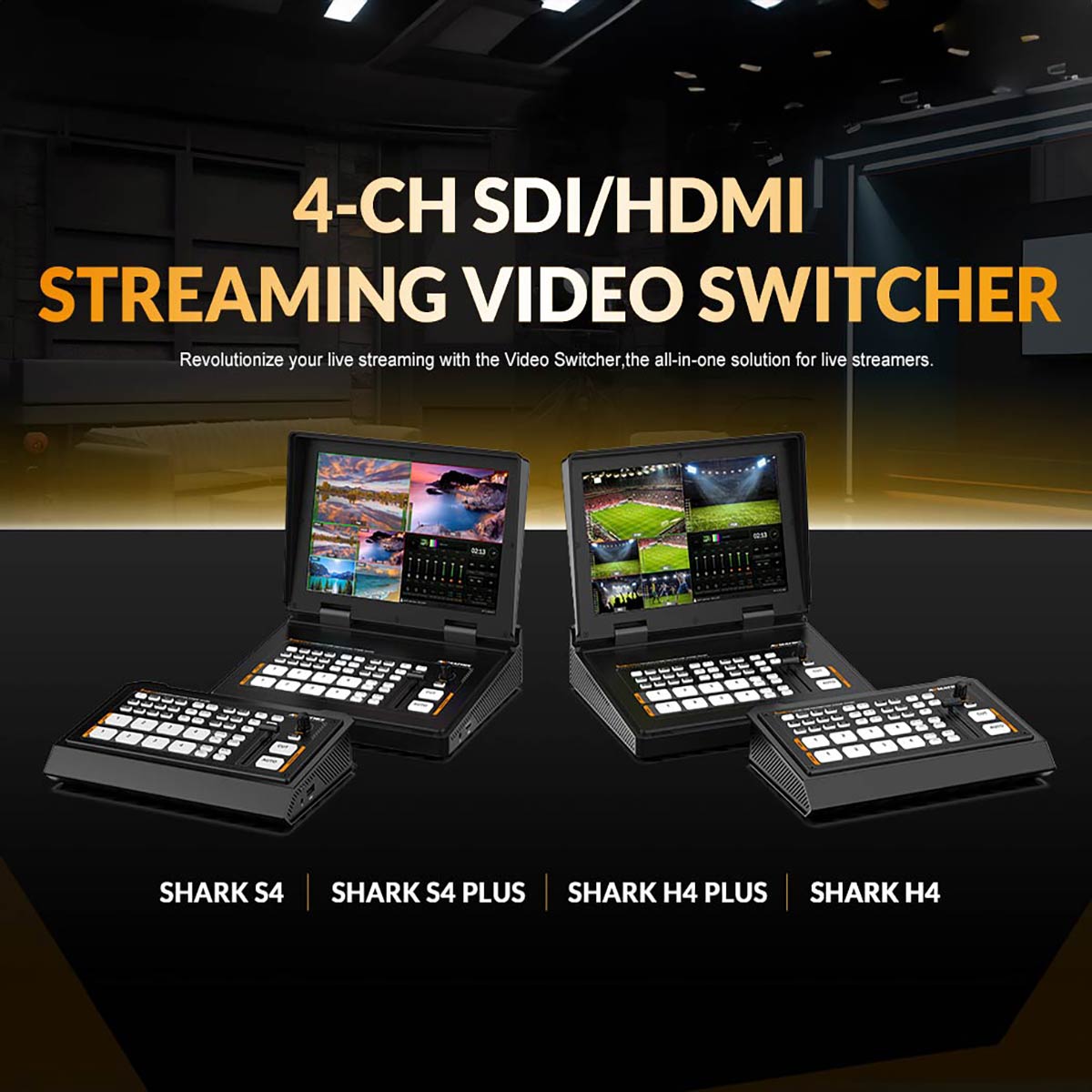 En la gama de productos de radiodifusión de la marca AVMATRIX no se puede pasar por alto la gama de nuevas salas de control HD portátiles Shark, disponibles en versión de seis canales (S6) y en varias variantes de cuatro canales (H4, H4 Plus, S4 y S4 Plus: los modelos «H» están equipados con 4 entradas HDMI, las versiones «S» tienen 2 entradas 3G-SDI y 2 HDMI, y la denominación «Plus» se incluye en el nombre de las alternativas equipadas con una pantalla FHD de 10,1 pulgadas). El modelo superior S6, con una pantalla LCD integrada de 5", cuenta con 4 entradas 3G-SDI y 2 HDMI, y salidas 2x 3G-SDI, 1x HDMI PGM, 2x 3G-SDI (aux), 1x HDMI (multiview) y 1x USB-C. La unidad de control ofrece funciones de streaming (LAN y USB; RTMP/RTSP/SRT) y grabación (tarjetas SD, discos USB externos; M-JPEG hasta 1080p60), funciones de croma de alta calidad, efectos de fundido (incluido su control mediante la barra T integrada), funciones de mezcla de audio (desde 4 entradas SDI, 2 HDMI y 2 MIC), control remoto de cámaras PTZ (VISCA, VISCA over IP, Pelco D/P y ONVIF a través de LAN/RS-232/RS-422/RS-485), puerto GPIO para señalización y mucho más... A pesar de su amplia gama de funciones, destaca por sus dimensiones compactas (238,5 x 168,2 x 47,5 mm, 1450 g o 2370 g con accesorios incluidos) y su precio muy asequible.