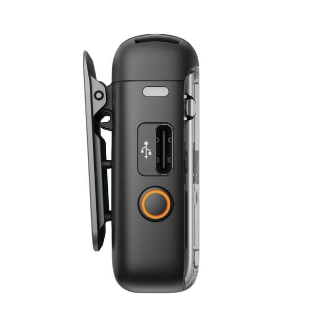 Cada transmisor y receptor tiene una autonomía excepcional de hasta 6 horas, que se puede ampliar hasta 18 horas con el estuche de carga, lo que resulta ideal para retransmisiones en directo y la producción de vídeo. Además, una vez conectado al smartphone, el puerto USB-C del receptor se puede conectar a un cable de carga para cargar simultáneamente tanto el teléfono como el receptor.