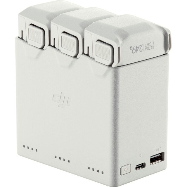 Carga y gestiona tus baterías de vuelo fácilmente con el concentrador de carga bidireccional DJI Mini 3 Pro. Este concentrador compacto, diseñado para las baterías de vuelo inteligentes de DJI Mini 3, Mini 3 Pro y Mini 4 Pro (incluidas las versiones Plus), carga de forma inteligente hasta tres baterías seguidas, dando prioridad a la batería con mayor energía restante para que puedas volver a volar más rápido.