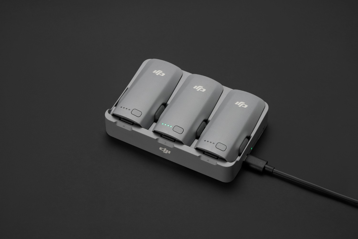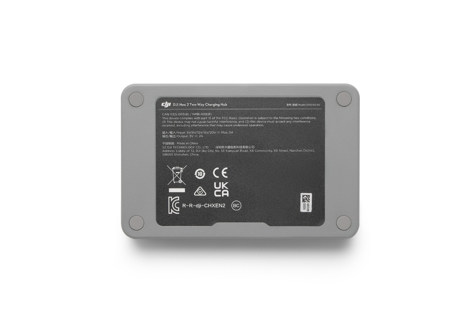 El DJI Neo 2 Two-Way Charging Hub permite cargar hasta tres baterías de forma secuencial o utilizarlo como batería externa para cargar otros dispositivos.