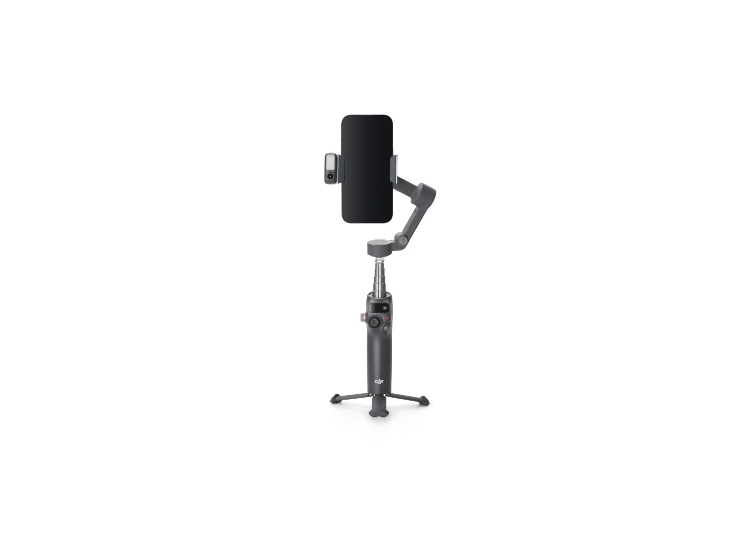 Gracias a la perfecta integración del cardán y el trípode, no se necesitan accesorios adicionales. Basta con desplegarlo sobre una superficie estable y podrás dedicarte a crear contenido sin problemas.