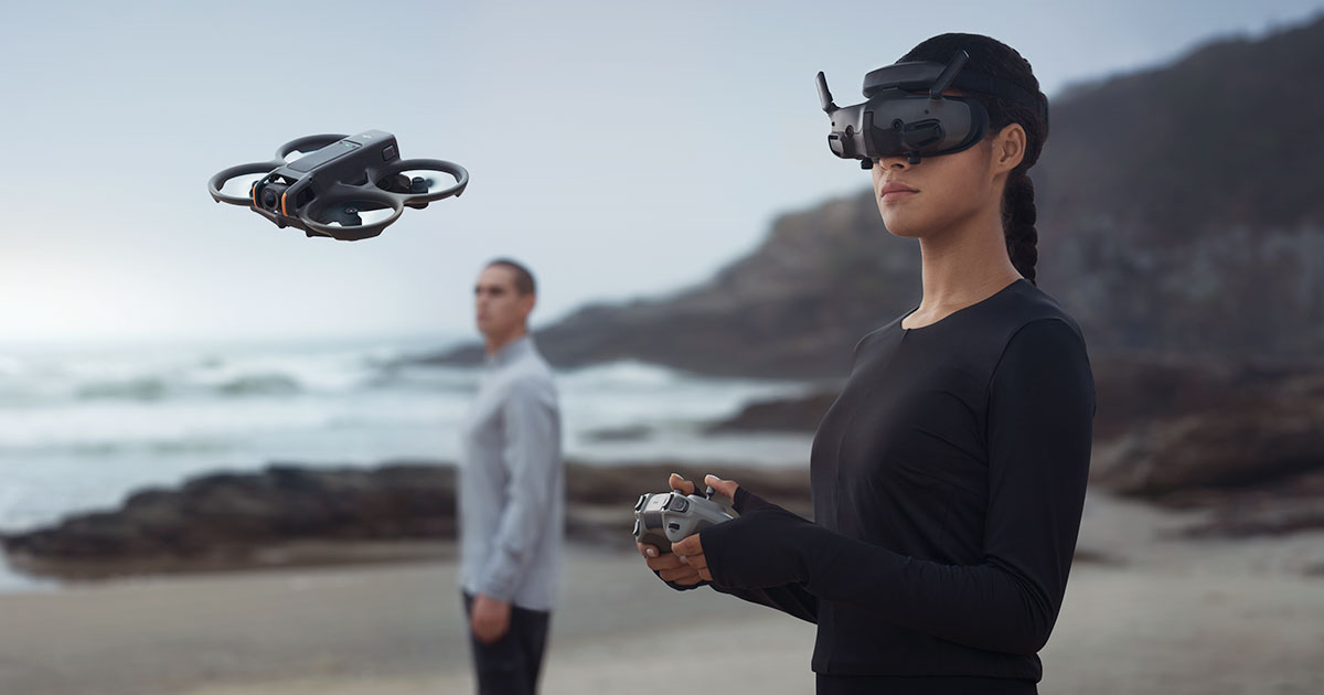 La segunda generación del popular dron DJI Avata ofrece una mayor calidad de imagen (modo D-Log M de 10 bits, HDR), mayor autonomía de la batería (hasta 23 min., compatible con carga rápida PD), mayor alcance de transmisión de vídeo (hasta 13 km, 24 ms de latencia, 1080p/100 fps y velocidad de transmisión de datos de hasta 60 Mb/s) y una capacidad de almacenamiento interno considerablemente mayor (46 GB). También son nuevas las posibilidades de acrobacias aéreas con el accesorio opcional DJI RC Motion 3 (volteretas de 360°, giros de 360°, drift de 180° con un solo botón...), entre otras cosas gracias al diseño renovado de los elementos de protección integrados, que hacen que el Avata 2 sea más ligero y maniobrable... ¡Ya a la venta!