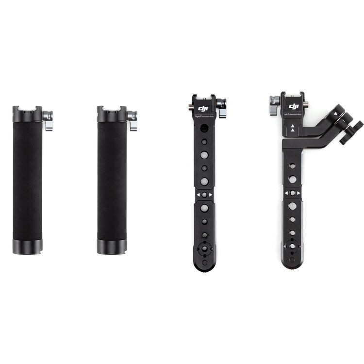 El DJI R Twist Grip Dual Handle es un accesorio universal diseñado para los gimbals de la serie DJI RS, que permite controlar cómodamente el gimbal con ambas manos o bajo el brazo («maletín»). A diferencia de las empuñaduras dobles tradicionales de una sola pieza, se compone de cuatro componentes modulares: dos brazos extensibles y dos empuñaduras, que se fijan fácilmente mediante fijaciones NATO para un montaje rápido o un almacenamiento compacto. El brazo izquierdo se puede utilizar por separado para tomas desde un ángulo bajo con un solo agarre, mientras que los brazos están equipados con varios orificios roscados de 1/4"-20 y 3/8"-16, además de soportes para fijar accesorios, como monitores o micrófonos. El sistema también es compatible con el mango opcional Ronin Tethered Control Handle para el control por cable de las funciones de la cámara y el cardán. El mango doble Twist Grip, ligero y modular, aumenta la maniobrabilidad, el control y la flexibilidad de los accesorios para configuraciones cinematográficas profesionales.
