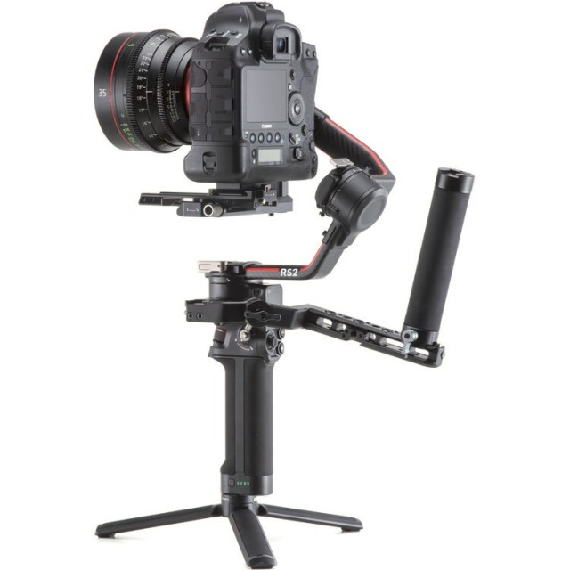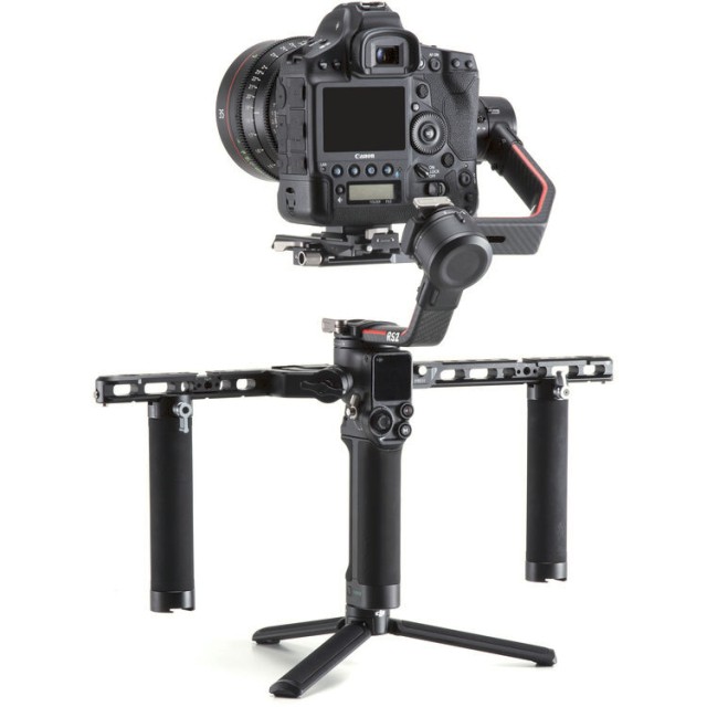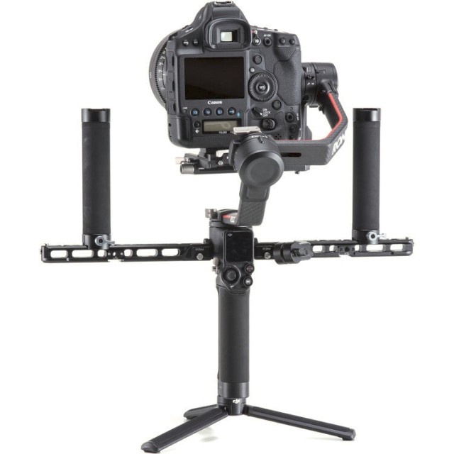 El DJI R Twist Grip Dual Handle ofrece un control ergonómico con ambas manos o un control suspendido para los gimbals de la serie RS. Está equipado con brazos y empuñaduras modulares, fijación NATO y varias bases roscadas y de montaje en frío para accesorios.