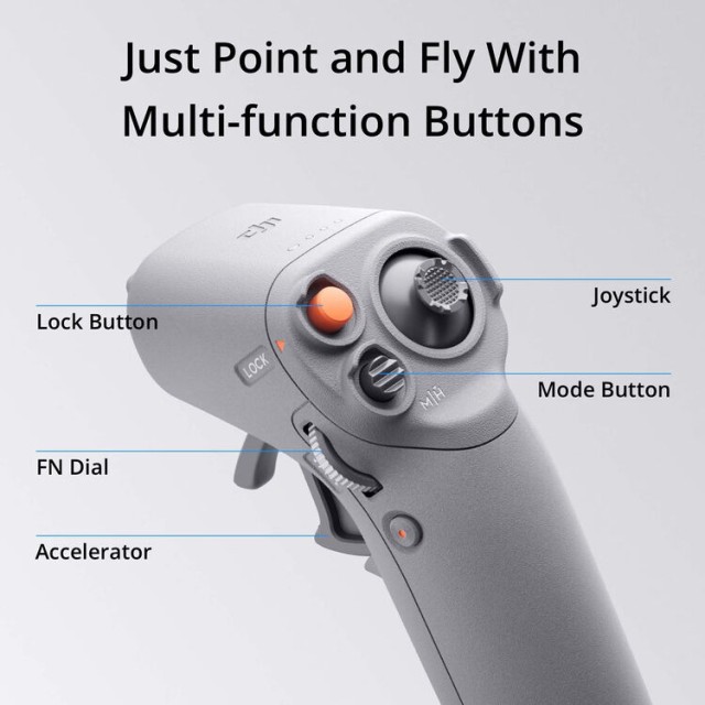 El DJI RC Motion 2 revoluciona el control de los drones gracias a la tecnología de detección de movimiento, que permite a los pilotos dirigir, girar, maniobrar y realizar maniobras complejas mediante movimientos naturales de las muñecas y las manos. El joystick de vuelo integrado garantiza un control preciso tanto para principiantes como para pilotos experimentados, mientras que la función de aceleración y marcha atrás controlada por el gatillo ofrece posibilidades de vuelo dinámicas. El controlador giratorio multifuncional FN permite controlar los ajustes de la cámara en tiempo real, incluyendo el ISO y el obturador, así como las funciones de navegación cuando se empareja con las gafas DJI FPV compatibles.