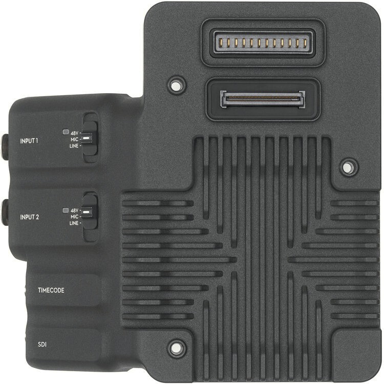 La placa de expansión DJI Ronin 4D añade a tu cámara Ronin 4D una salida SDI de 6K u 8K, código de tiempo y entradas de audio XLR, lo que permite una conexión de audio y vídeo profesional con compatibilidad con alimentación fantasma.