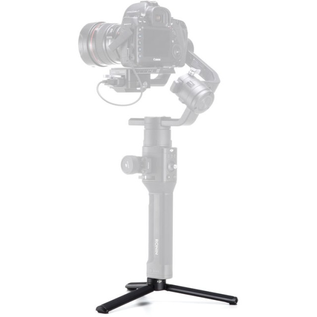 El DJI Ronin-S Part 2 Extended Grip/Tripod es un accesorioversátil que se fija de forma segura a la parte inferior de la empuñadura del Ronin-S mediante un tornillo integrado de 1/4"-20. Cuando se utiliza como extensión de la empuñadura, permite un manejo cómodo con ambas manos, lo que proporciona a los cineastas un mejor equilibrio y un mayor control sobre los movimientos dinámicos de la cámara. Una vez desplegado, se convierte en un trípode estable que permite que el gimbal se mantenga en posición vertical sobre superficies planas entre tomas o durante los ajustes. Este accesorio es compacto, ligero y fácil de usar, lo que lo hace ideal para rodajes sobre la marcha y flujos de trabajo flexibles durante la filmación.