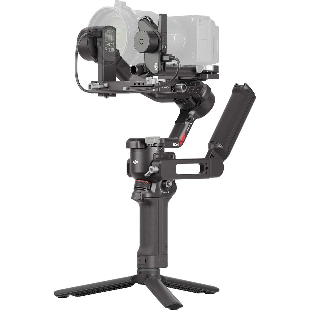 El cuerpo ligero tiene una capacidad de carga de 3 kg. Soporta conjuntos habituales de cámaras sin espejo y objetivos, se sujeta cómodamente y es muy potente. En comparación con la generación anterior, el eje de inclinación del modelo RS 4 se ha alargado
