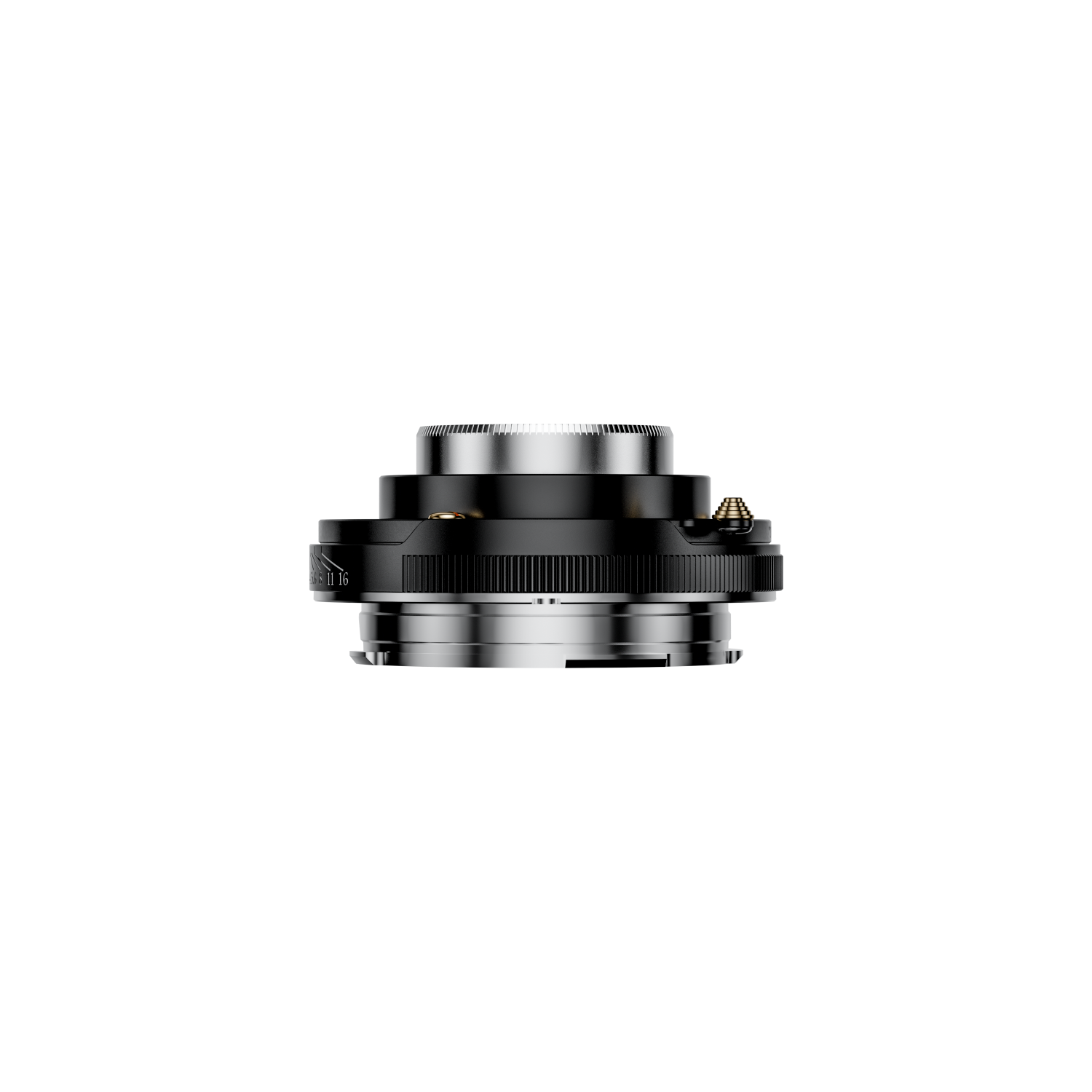 El objetivo Thypoch Eureka 28 mm f/2,8 ASPH. para montura Leica M, en color negro semibrillante, combina la elegancia de los objetivos «pancake» vintage de los años 50 con la tecnología óptica moderna. Gracias a su cuerpo compacto de latón, su apertura de f/2,8 y su avanzada construcción óptica asférica/HRI, este objetivo ofrece imágenes nítidas y expresivas, ideales para la fotografía callejera, los viajes, los interiores, los retratos y la narración cotidiana con las cámaras Leica M.
