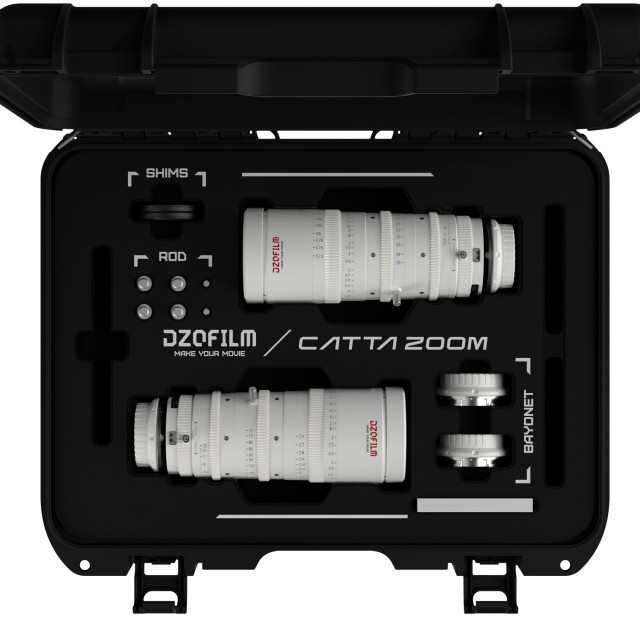 Cubre un amplio rango focal de 18 mm a 135 mm con el elegante diseño en blanco del set de dos objetivos DZOFilm Catta FF 18-35 mm y 70-135 mm T2.9 Cine Zoom. Este conjunto de objetivos cinematográficos de formato completo, desarrollado para cineastas profesionales, ofrece un rendimiento óptico constante y una precisión mecánica fiable para largometrajes, documentales, trabajos comerciales y producciones online.