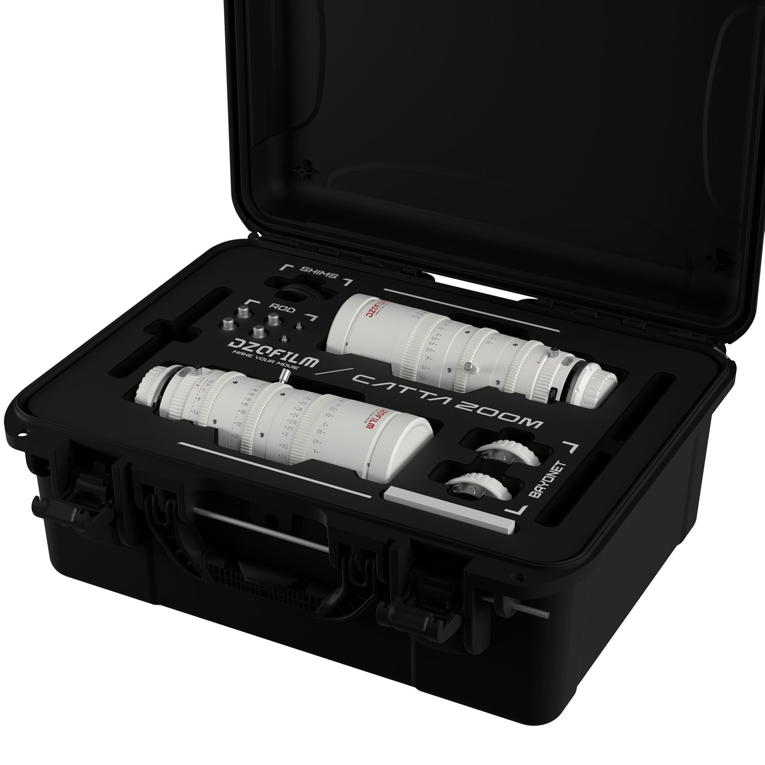 El kit de dos objetivos DZOFilm Catta FF 18-35/70-135 mm T2.9 Cine (Sony E, blanco) ofrece una cobertura cinematográfica de formato completo, desde objetivos ultra gran angulares hasta teleobjetivos. Este kit profesional incluye dos objetivos zoom cinematográficos parafocales con una apertura constante de T2.9, respiración mínima y un diafragma de 16 láminas para un bokeh suave, lo que garantiza una exposición consistente y una excelente calidad de imagen. Está diseñado para producciones documentales, televisivas y digitales, e incluye objetivos intercambiables con montura Sony E, accesorios de soporte especiales y un estuche rígido con relleno de espuma a medida.