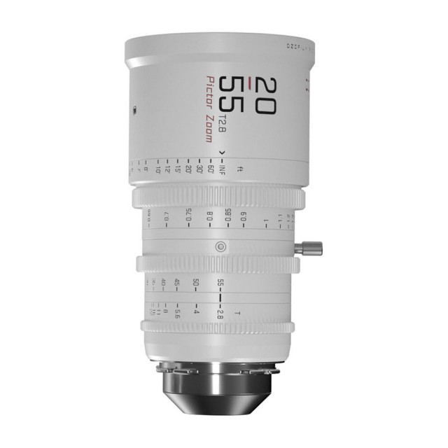 El objetivo cinematográfico parfocal DZO Pictor 20-55 mm T2.8 cubre sensores de formato Super 35 / APS-C, ofrece una luminosidad de T2.8 en todo el rango de distancias focales y se suministra con monturas intercambiables PL y EF. El diseño del objetivo elimina prácticamente el efecto de respiración y garantiza una imagen nítida en toda la superficie, así como un bonito renderizado de la escena fuera del plano de enfoque gracias a su diafragma de 16 láminas. Por supuesto, cuenta con anillos dentados de enfoque, diafragma y zoom para un fácil control remoto mediante sistemas de enfoque lateral (M0,8; recorrido del anillo de enfoque de 270°). El diámetro frontal es el estándar de 95 mm para los soportes habituales, y la rosca para filtros es de 86 mm. Tampoco falta la base para sujetar el objetivo en los rigs. Versión en blanco. Peso aprox. 1520 g. Para monturas PL y EF.