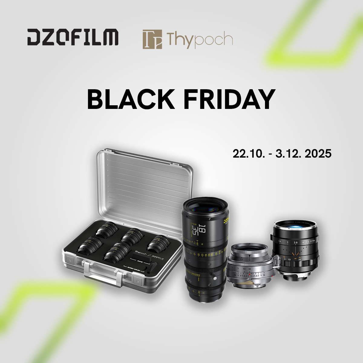 Del 22 de octubre al 3 de diciembre de 2025 se celebran promociones especiales con descuentos en productos seleccionados de DZOFILM y Thypoch, que ofrecen excelentes oportunidades para ampliar tu equipo fotográfico y cinematográfico. En la promoción encontrarás descuentos en las siguientes gamas de productos: